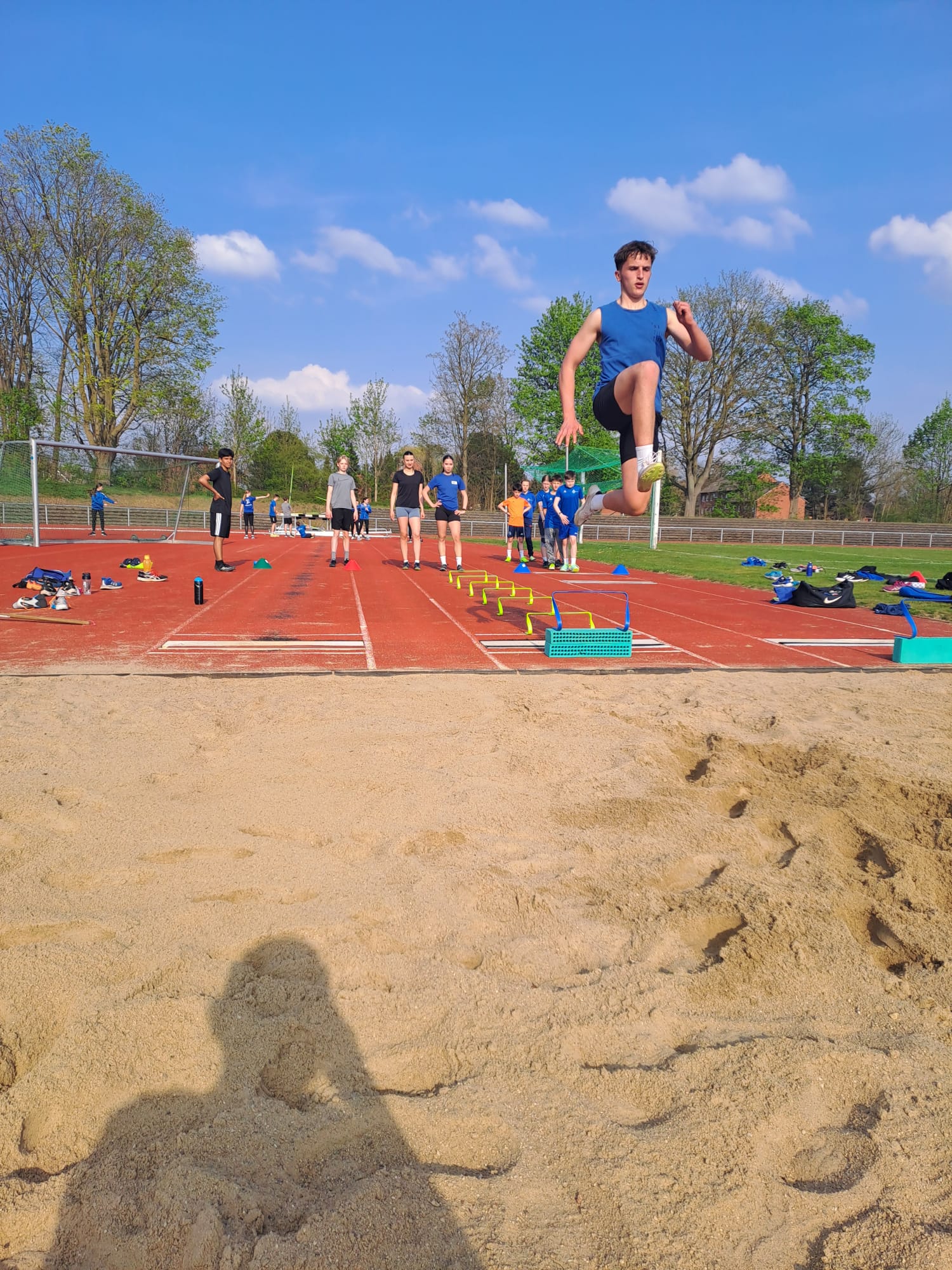 "Heute am 14. April haben wir drei verschiedene Disziplinen gemacht. Wir haben Sprint, Kugelstoßen und Weitsprung gemacht. Am Abend waren wir dann noch in der Halle.