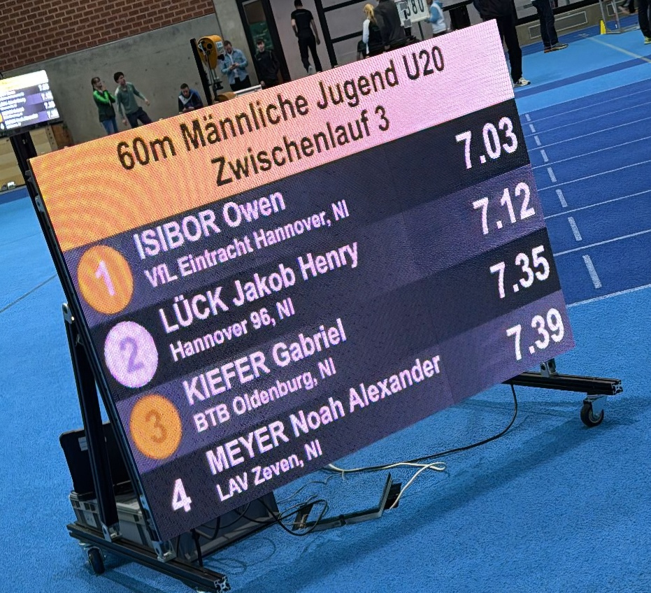 Anfang Januar 2026 konnte Gabriel beim Hallensportfest in Hannover seine Bestzeit auf 7,53 sec. schrauben. Heute gelang ihm im Vorlauf eine erneute  Verbesserung auf 7,46 sec.
